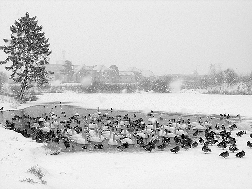 V zimě se na vodní plochy ve městech stahuje vodní ptactvo. Ani na to bychom neměli s přikrmováním zapomenout. Těm můžeme nabídnout starší pečivo, ne však příliš tvrdé, aby se při polykání neporanili. Vděčni budou i za ovesné vločky. V žádném případě nekrmíme čerstvým pečivem, soleným a jinak kořeněným a zbytky s kuchyně. To platí i pro krmení malých ptáků na krmítkách.